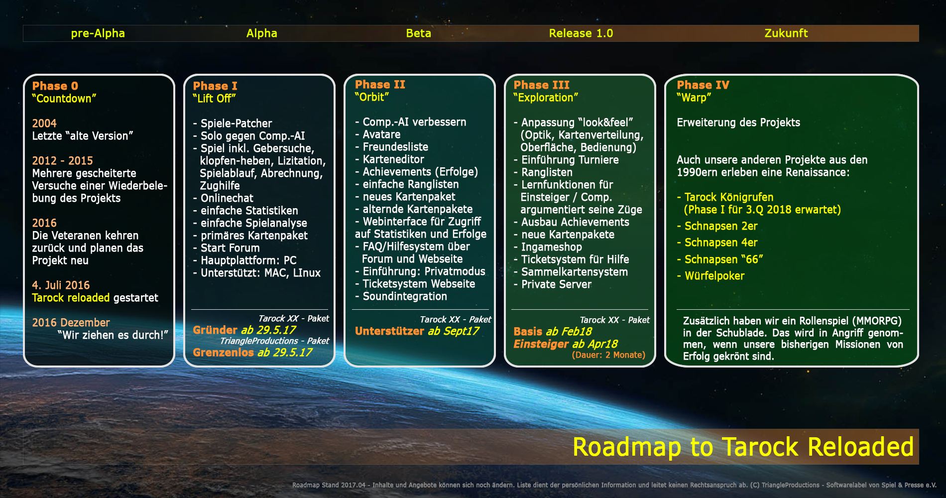 Wir haben bis zuletzt an unserer Osterüberraschung für Euch getüftelt. Aber nun ist sie fertig .. die Roadmap für Tarock XXer-Rufen reloaded 2017-